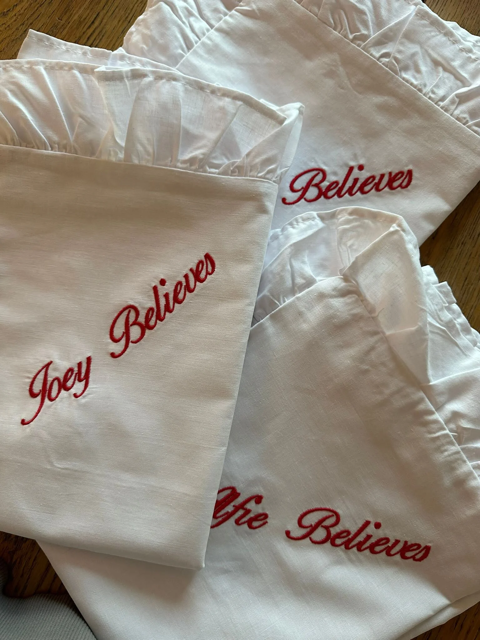 Bonita’s personalised pillow case is a must have for Christmas Eve. Personalised in red embroidery with your child’s name to make the nights leading up to Christmas even more magical .