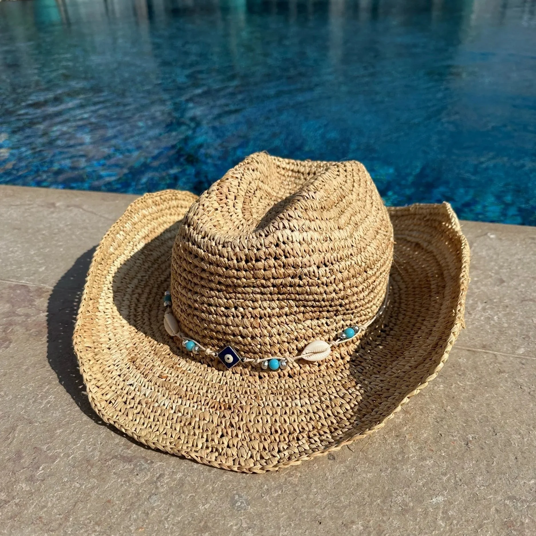 Raffia Western Cowboy Hat – Noir Star £75.00 Raffia Western Cowboy Hat – Cocoa Shell £75.00 Raffia Western Cowboy Hat – Turquoise Tides £75.00 Sold Out Raffia Western Cowboy Hat – Mykonos Charm £75.00 Western Raffia Cowboy Hat – Noir £75.00 Western Raffia Cowboy Hat – Cocoa £75.00 Western Dream - Palm Leaf Cowboy £90.00 St Barts - Palm hat with tan band £100.00 Cuba - Palm hat black band £100.00 Sold Out Western Raffia Cowboy Hat – Natural £75.00