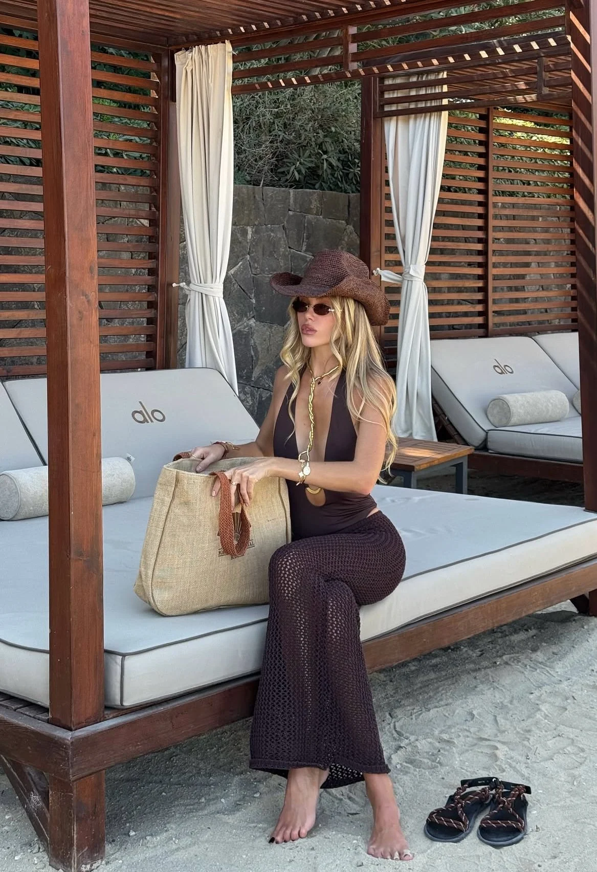 With its structured cowboy silhouette and earthy tone, this hat elevates every look — from swimsuits to sundresses. A versatile staple that carries you seamlessly from coastal afternoons to golden-hour adventures.