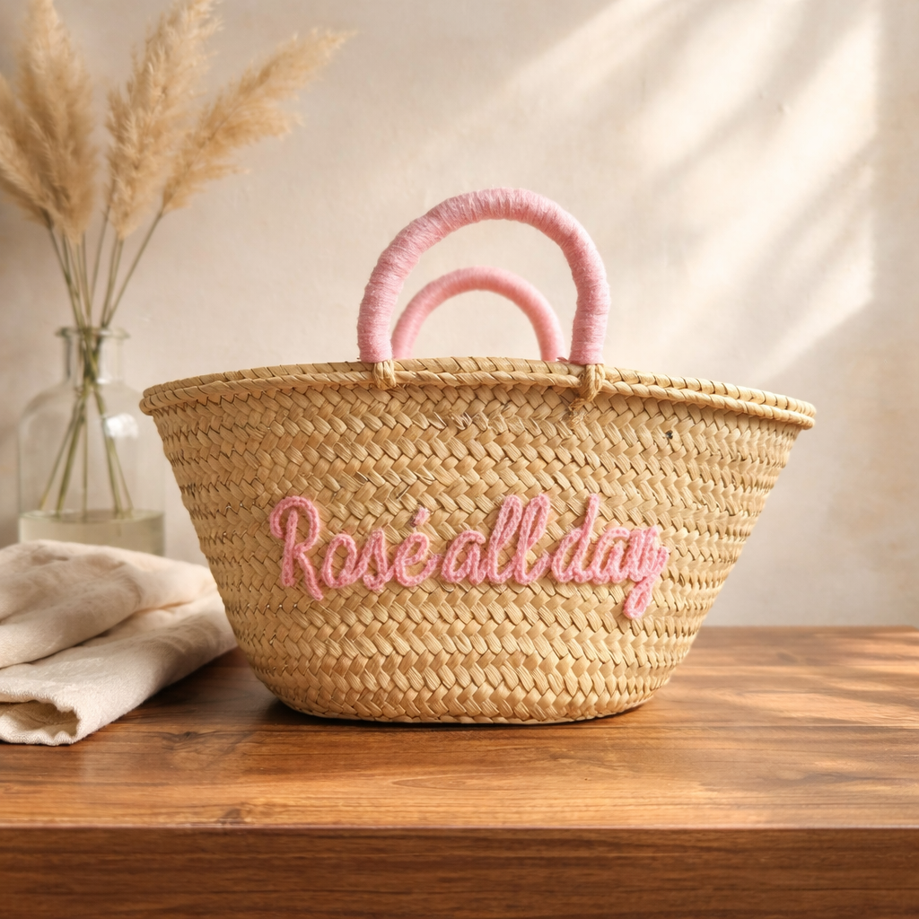 This limited edition, gorgeous basket has pale pink handles and embroidered ‘Rosé all day’ is essential for our rosé loving, globe trotting fashionista’s!