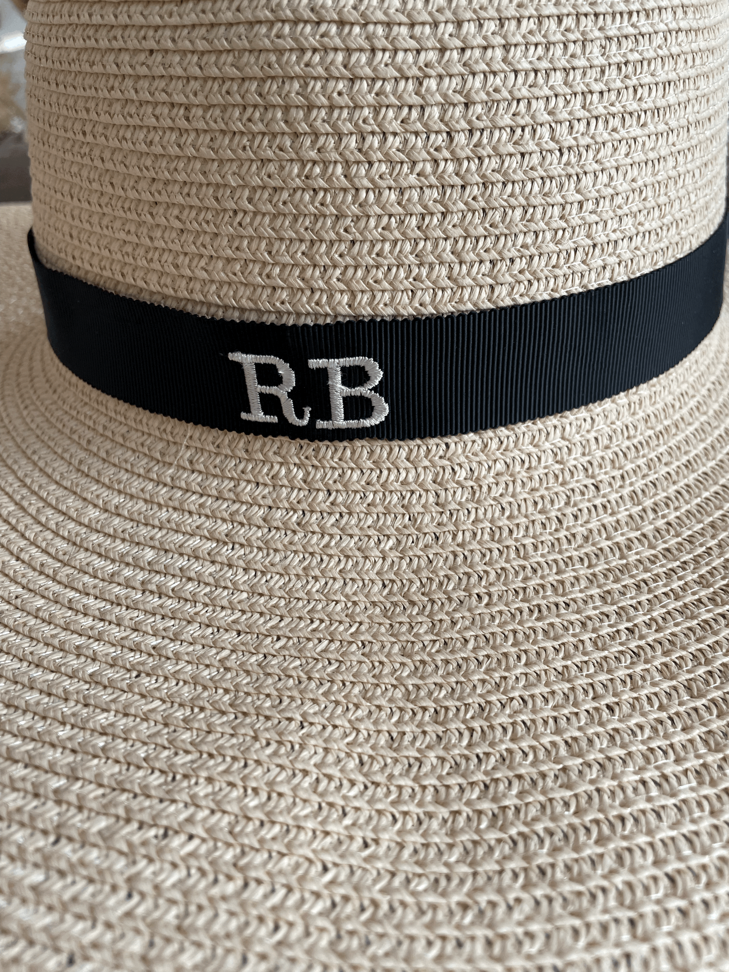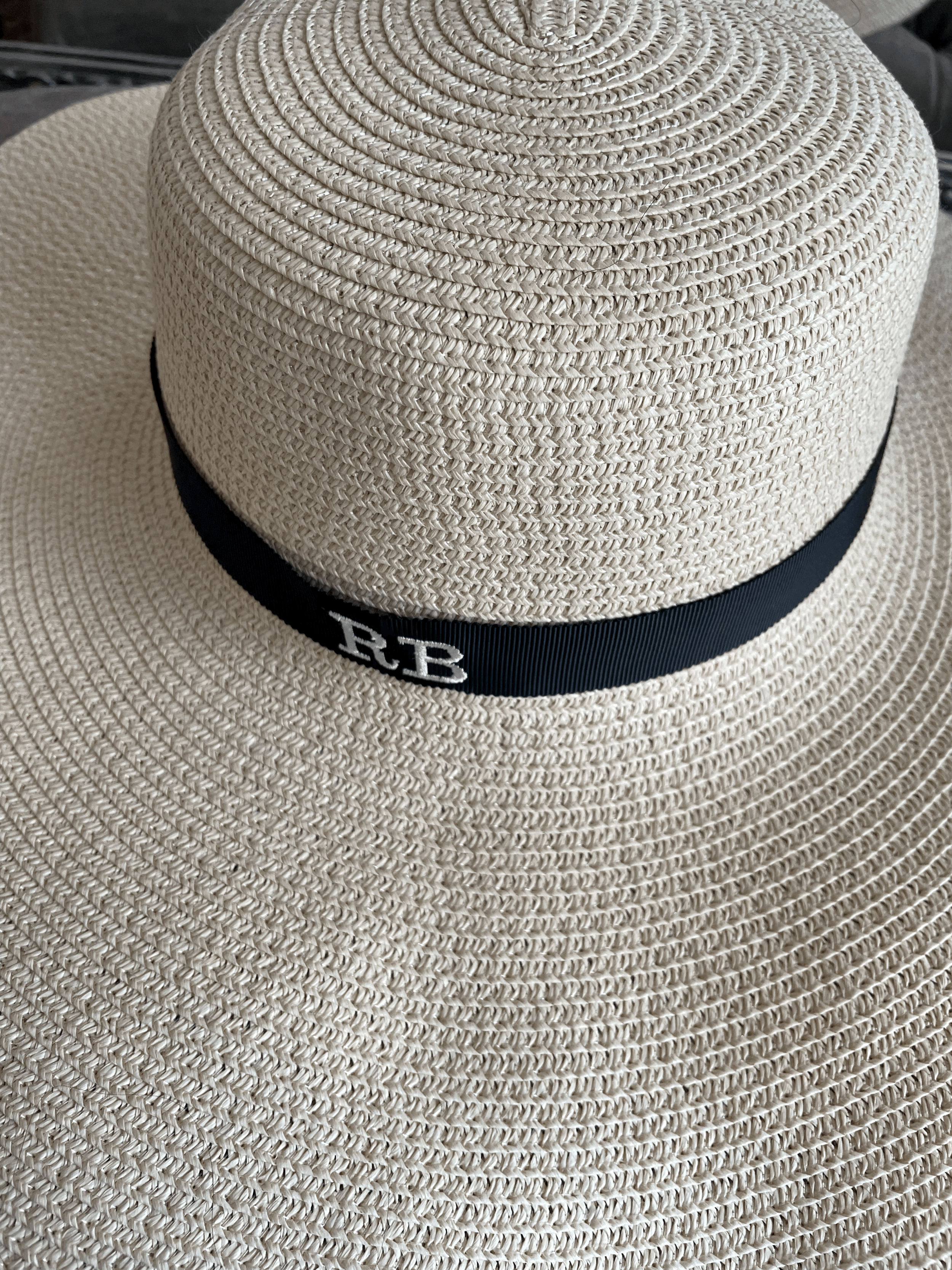 Bonita’s Bonita's Large Brim Sunhat With Black Band is a summer classic, decorated with a black ribbon, add your monogram and make it yours!