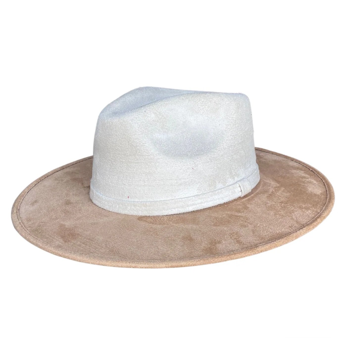 Vegan Suede Unisex Rancher Hat - Ivory with Tan