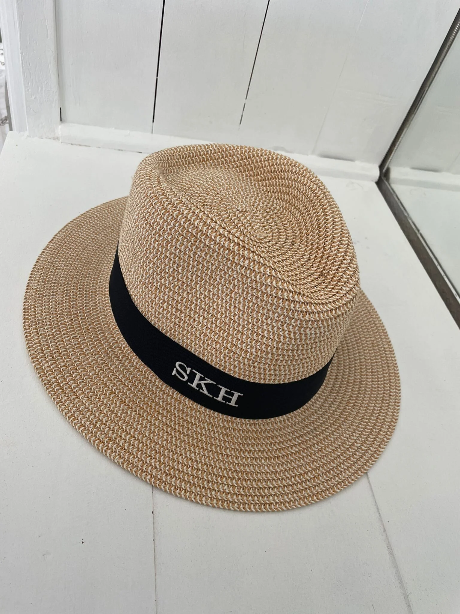 Bonita’s gorgeous unisex summer fedora’s with black band is a summer classic, personalised with ‘SKH’